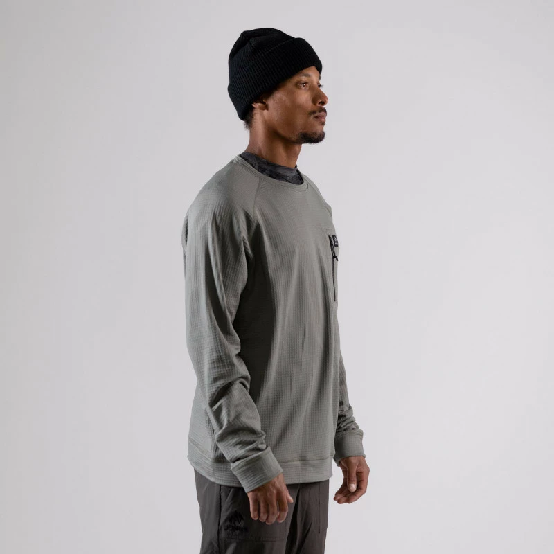 A technical midweight polar fleece layer made with 100% recycled polyester. Layer it over a tech tee as a cozy mid-layer, or wear it as an outer layer on sunny, spring shred days. Features a zippered chest pocket.