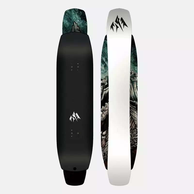 The Mountain Skate’s sub deck offers both carving and freestyle performance thanks to the tapered directional twin shape, CamRock profile and 3D Contour Base 1.0. The construction of the sub deck is just like a miniature Jones board and features a FSC wood core, Biax fiberglass and recycled edges + sidewalls. The Top Deck is shaped like a concave skateboard deck and is also built with bomber snow-proven materials including a FSC wood core, Biax fiberglass and full wrap ABS sidewalls. For added traction, the top deck is lined with a full length foam pad, and for precise turn performance, the Mountain Skate has premium, aluminum snow skate trucks.