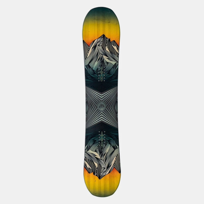 Most kids boards are made with very basic materials and are designed for first-time riders. Not the Prodigy. The Prodigy features the same premium materials and performance features as Jones’ adult models and offers quick learning young riders a solid foundation to keep progressing their skills. The spooned nose+tail edges on the Prodigy’s 3D Contour Base 1.0 allow for fluid ‘no catch’ turn initiation while the CamRock profile keeps the board floating in any snow condition. The Prodigy is also designed to be a little narrower than most other kids boards so small-footed riders can learn to rail turns with the board up on edge.