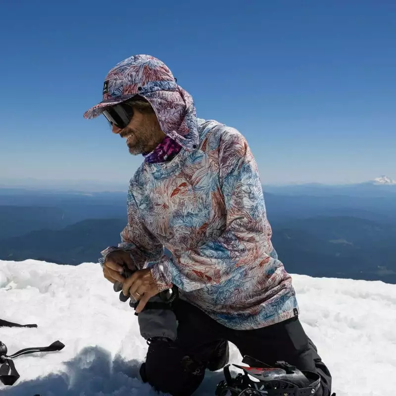Stay cool and slough off sunshine from all sides in this 100% recycled micro rip-stop tech cap featuring neck flaps. The Shasta Rama Cap is designed for and dedicated to the mighty Mount Shasta, a massive volcano in Northern California that requires serious hours climbing in the sun to stand on top of.