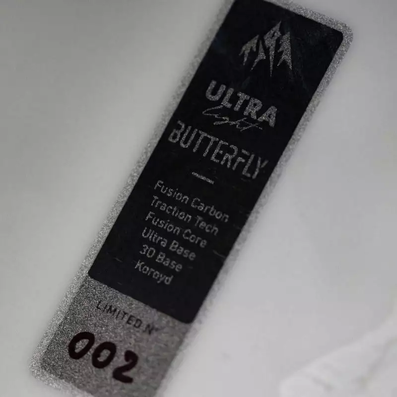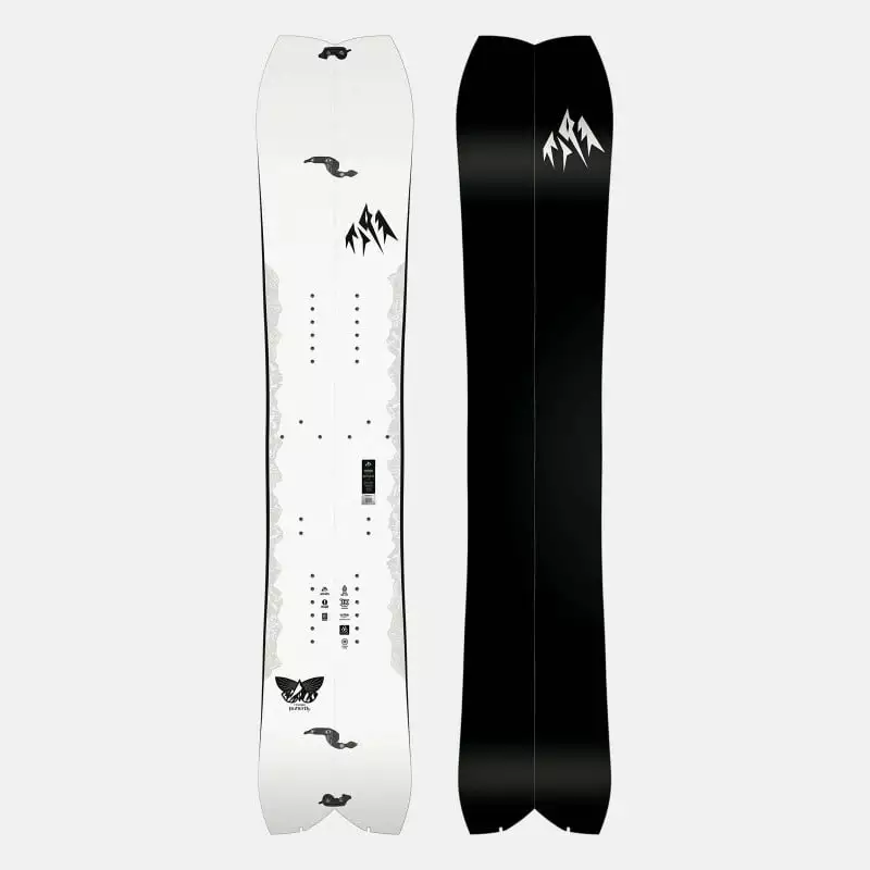 By drastically reducing the tip and tail size, but keeping the contact points pushed out, the Butterfly Split has the effective edge of a board 10 cm longer than its length. The long effective edge is matched with a true camber profile for maximum edge power in variable alpine conditions. For added float, quick edge-to-edge response and unmatched torsional board lock, the Butterfly Split features 15 mm of taper, a 3D Contour Base 3.0, Inner/Outer Traction Tech 3.0, the Boltless Bridge, Karakoram Tip Lock Tip Clips and Karakoram 3C Clips. The Ultralight Butterfly Split is also built with our new Ultralight construction including a new eco-topsheet and a wood core made with two layers of carbon and multiple sections of Koroyd that absorb chatter at a fraction of the weight of wood. The Ultralight Butterfly Split matches a revolutionary shape concept with cutting edge materials to become the key for pioneering riders to unlock game changing new lines in remote terrain.