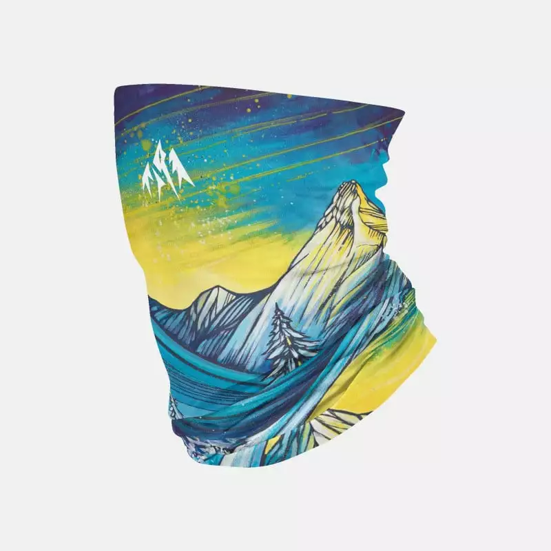 Protect that baby face from sun, snow and wind wearing this lightweight neckwarmer featuring mountain art by RP Roberts. This neckwarmer is made with REPREVE, a unique 100% recycled polyester fiber made from plastic bottles and fabric scraps.